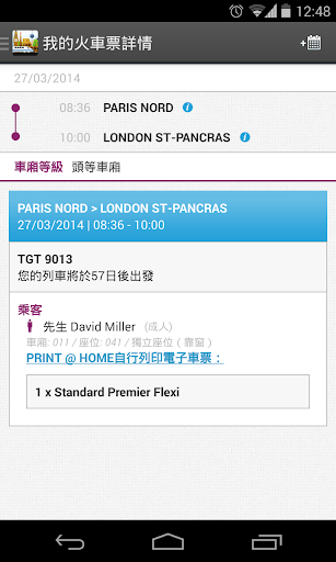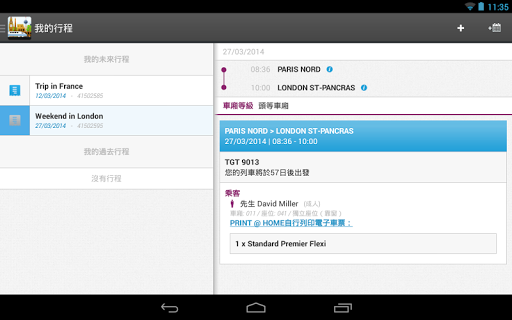 這個app裡整合了行程表提醒功能,可以提醒你即將開始的旅程。你還可以查詢往返時間,根據這些資訊安排你的旅程。除此之外,你還可以獲取火車票的詳細信息,包括搭乘的火車類型、所選擇的等級服務、乘客姓名、車票有效期和通票中所包含的的國家等。你還可以通過這個app回顧自己以往的火車旅程。