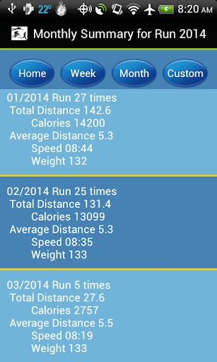 MyExerciseLog is used for recording and logging time and distance of activities such as running and cycling. It is customizable to add any activity and is perfect for multi-sport athletes. The built in reports for weekly, monthly and yearly summaries provide a quick and easy way to analyze your progress. There also is a custom report and graph feature that allows the selection of dates and other filters such as training type or location. It computes calories burned for running, cycling and walking but can optionally entered as well. It has options to backup and restore the database, export and import comma separate variable files and export of KML and GPX files and it doesn't have ads.