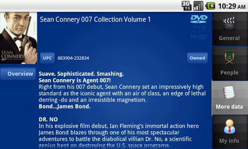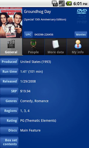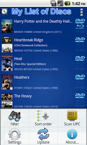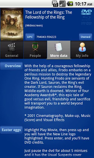 The new app is much better than the previous one, with cover thumbnails, information about the format (DVD, HD-DVD and Blu Ray) and tabbed folders with additional information (general info, cast & crew, overview, easter eggs, purchase date and place, loan status, etc.) It allows you to search, filter and sort your data in some very convenient ways. It even allows you to select a disc by scanning its UPC barcode. It is still really fast, compromising some of the speed by the new features it provides.