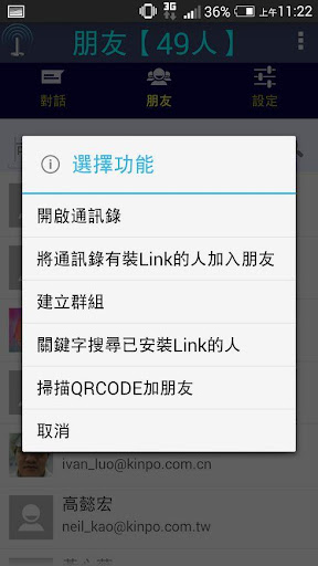 ◆可透過通訊錄mail帳號或手機號碼,自動加好友。