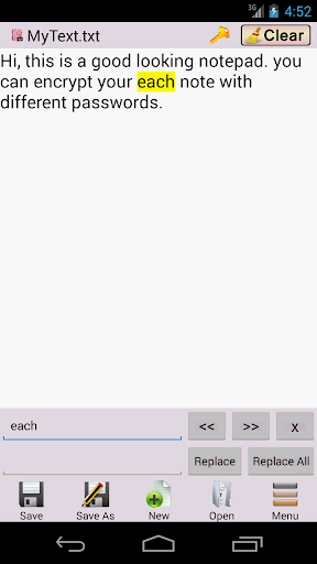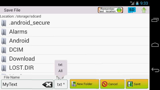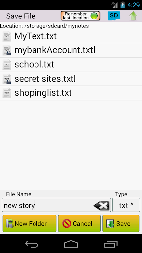 Notes2SD Text Editor is a complete android notepad. It directly saves your notes/text to SD card in txt format. Very useful for tacking regular notes without worrying about losing your text notes if something wrong happens with your phone or you simply uninstall the app. You can also transfer/copy your notes to PC, laptop or any digital device which supports txt files.