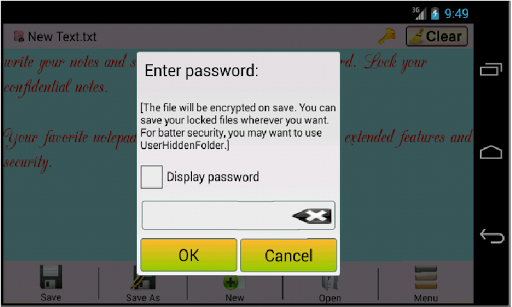 It also provides powerful security by encryption-decryption technique. You can put different password for each text note and save wherever you want.