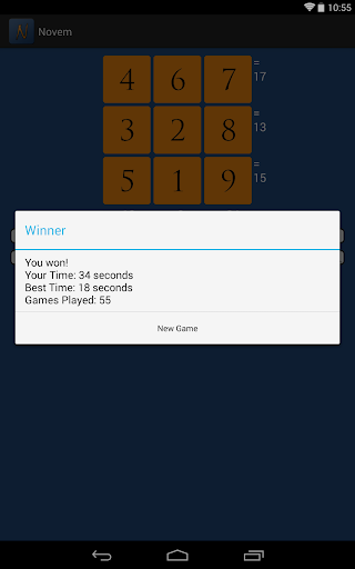 Novem is the deceptively difficult number puzzle game that keeps you coming back for more. People of all ages can challenge themselves to solve the puzzle!
