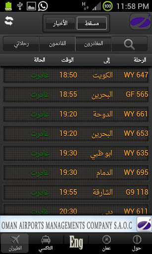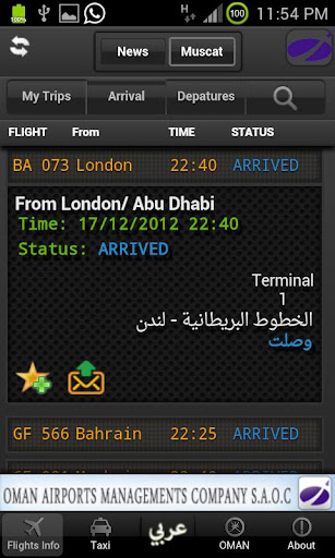The application also contains information about Lounges, Shopping, Foods, Taxi and Parking available in Oman airports.