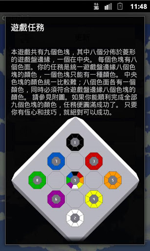中央色塊的顏色統一比較難;八個色面各有一個顏色,同時必須符合遊戲盤邊緣八個色塊的顏色。