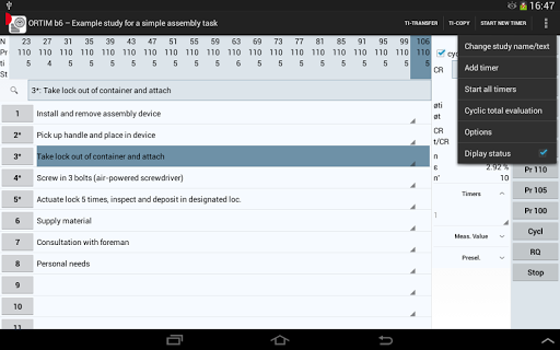• Up to 1000 work cycle elements enable you to record even the most complex of activities. The ORTIM b6 app allows you to record both cyclic, non-cyclic and combined forms of studies in addition to allowance time studies and to further process these.