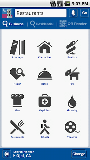 Ojai Guide is your comprehensive and accurate Search Engine to find everything in Ojai! Convenient touch calling; maps with directions that will guide you to any business; businesses websites, hours, videos and emails; restaurant menus; sharing via text, email, social media; and more! Changeable GPS, on screen bottom, allows usage in other cities too.