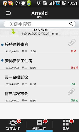 on call,是一款关于工作分配的软件,它融合了任务管理和时间管理的要素。如果你是发号者,它强大的提醒功能可帮助你时刻有力地督促下属;如果你是执行者,它清晰的任务列表能帮助你更好地规划事件和部署。工作的发出、阅览、延迟、完成情况一目了然,让你的轻松跟进、事半功倍的完成。本软件适用于雇主和雇工、上司和下属、家庭成员之间。