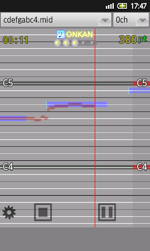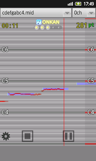 Have the ability to display superimposed on the screen, the music data of MIDI files. Check that you can sing as music.