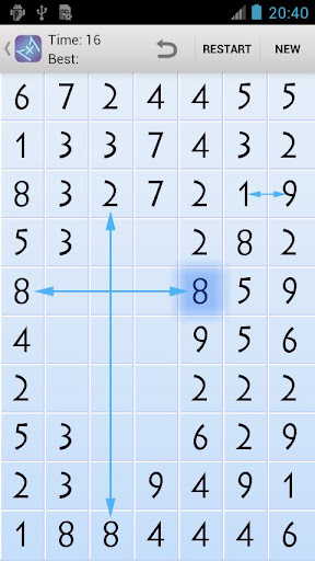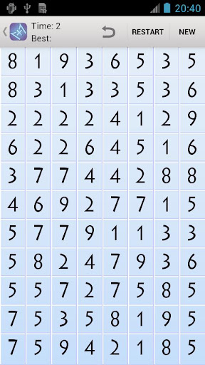 Onplon是一款理性数字谜语游戏。一开始就有已填上数字的区域。游戏的目的在于最终从区域清除所有数字。从区域中擦除相邻的两个一样,或是其倍数的数字。所谓相邻的意思是:两个在纵向和横向方向相邻,且中间没有其它数字的数字。例如擦除2时,其相邻的2或者8都应从区域上擦除。
