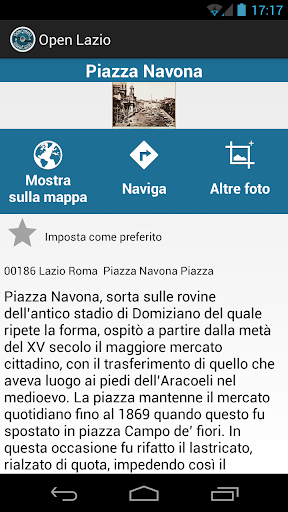 Hai trovato un posto che ti interessa? Vorresti andare a visitarlo? Open Lazio si integra con il sistema di navigazione del tuo smartphone e ti permette con un semplice "tap" di navigare fino al punto di interesse utilizzando l'auto, i mezzi pubblici o addirittura a piedi.