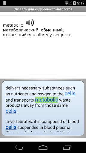Operator’s Dictionary предлагает специалисту в области стоматологии и челюстно-лицевой хирургии обширный набор слов, словосочетаний и фраз, начиная от общеупотребительной лексики, и заканчивая узкоспециализированными терминами. Практически все словарные единицы имеют два варианта транскрипции и сопровождаются звуковым файлом. Алфавитный и полнотекстовый поиск позволяют мгновенно находить как отдельные слова и выражения, так и делать контекстные выборки из всего содержимого словаря.