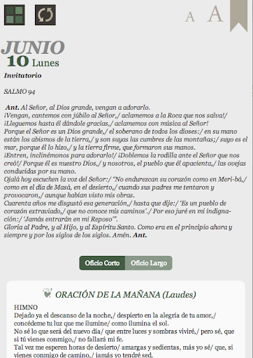 Oración de la Iglesia- Webapp 2013, es una aplicación que ofrece la posibilidad de rezar la Liturgia de las Horas, himnos, salmos y lecturas de laudes y vísperas, según el rito del Breviario romano y también una versión breve para quienes tienen poco tiempo y lo hacen muchas veces mientras se movilizan a las tareas diarias.