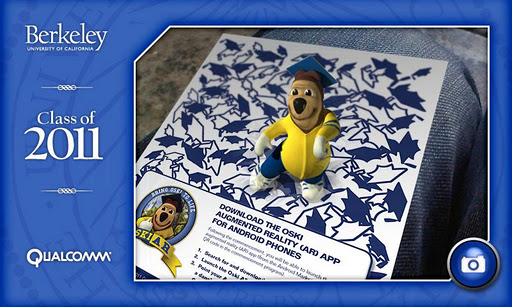 Bring your 2011 U.C. Berkeley Commencement Program “Oski AR” insert to life. The Oski AR app enables Cal ’11 grads, friends and family to use their devices see a dancing Oski, hear the Cal Band, and share a Cal ’11 grad photo with friends and family. Using AR or augmented reality technology from Qualcomm, the Oski AR app superimposes graphics onto a view of the real world (the commencement insert). To experience Oski AR:
