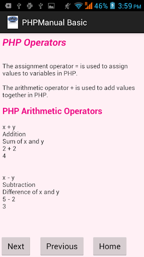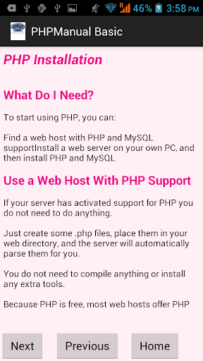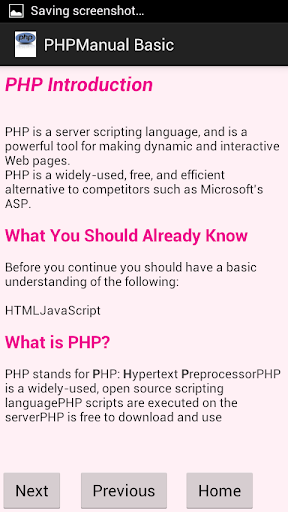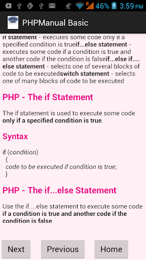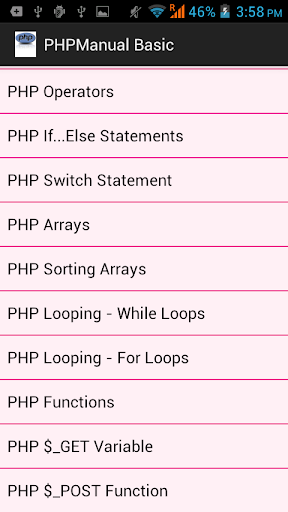 This manual consists primarily PHP Introduction, PHP Installation, Syntax, Variables, String variables, Operators, Conditions, Array, Loop, Function and other information.