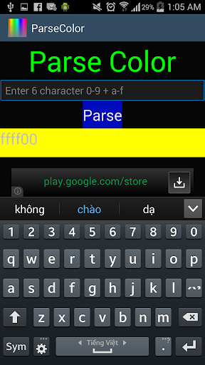 chỉ cần nhập mã ascii vào và Parse Color sẽ nhanh chóng cung cấp cho bạn.