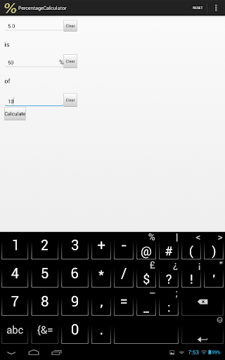 A simple percentage calculator which allows you to input any 2 of the 3 available fields and get the missing output.