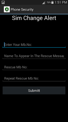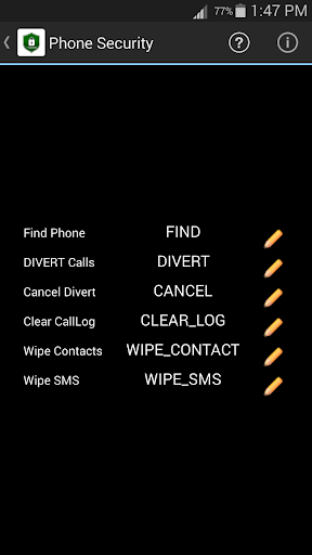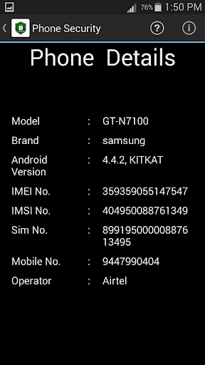 Phone Security is an Android application to control your phone via SMS .Using this app the user can divert calls to any other number when the phone is not with you via SMS (Only in India), delete contacts, sms and callLogs. This app also helps to find the phone even it is in silent mode . When you send an SMS in prescribed format (eg : 12345 FIND) from any other phone to the missing or misplaced phone, your phone Whistles continuously and strongly allows you to find your phone easily. Moreover it helps to find your Android phone if it is LOST or STOLEN. When someone changes the SIM card and inserts a new one the app will automatically send a preloaded message from the NEW SIM card to the Rescue number added by the user at the time of registration.It also gives the basic information of sim card and phone like IMEI number,IMSI number, Sim Number etc. The user should send SMS as per the below format To forward calls