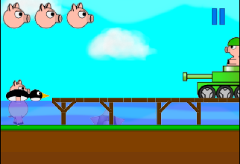 In this stunning new app you play as a pig who's being chased by his fellow pigs. Together with your bullet blasting penguin you engage them in battle. But don't let yourself get caught or the butcher might get some fresh bacon.