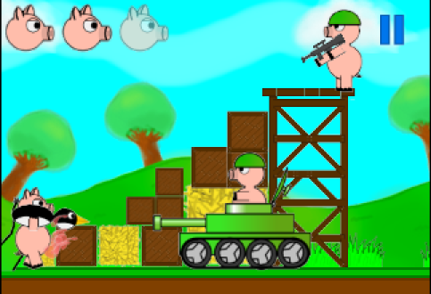Tanks, helicopters and pigs are waiting to kill you! Grab a penguin and defend yourself!