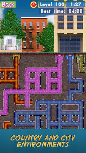 Your task is to close the pipeline system as fast as possible rotating the pipes in the right direction. There are hundred levels which contain from one to four different liquids and a lot of tricks.