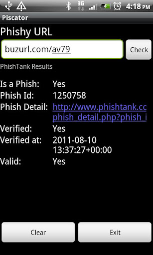 Protect yourself from Phishing Scams! Piscator uses PhishTank.org to check suspicious URLs and notifies you if they have been identified as sites related to Phishing.