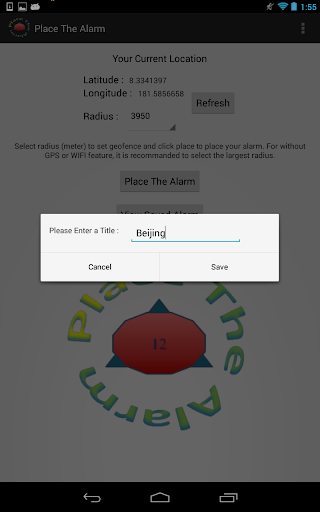 This is an alarm application that help to wake up users from sleep over and miss out any station during the journey in a subway, bus, or train. User can setup a Geofence location with three options of radius - 950 meter, 1650 meter & 3950 meter. Once Geofence is placed in any location, this mean that user will be alerted when the transportation he/she ride in enter within the selected Geofence area. This and then will wake up users from sleep over and miss out any station he/she want to get off.