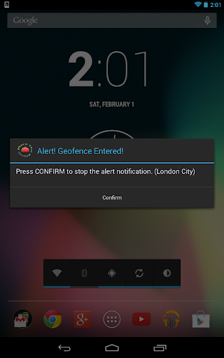 After set the Geofence, user can close the application and the Geofence alert alarm will be triggered when it detect Geofence enter happen.