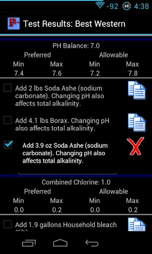 After you enter your chemical levels, the values are compared to industry recommended tolerances, which you can override if you wish, and the application recommends what needs to be added to bring your chemical levels back into safe balance. No more guessing! And a safe swimming pool for your family and friends.