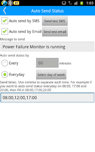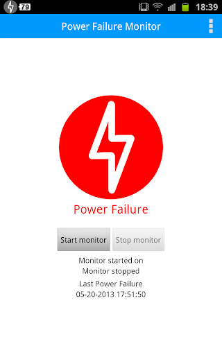 Important: Although Power Failure Monitor can run in background, and have menu in the system notification bar to back to its main screen, we suggested running in foreground only, to prevent be closed by Android system.