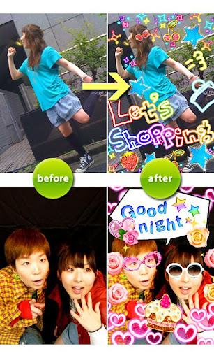 除了一般裝飾種類以外,另追加了在照片上寫字專用的「字幕系列」脫力系的「放鬆系列」,很健康可愛的「可愛系列」等。多種裝飾種類可分類整理。而且選擇分類只須簡單的2個步驟。