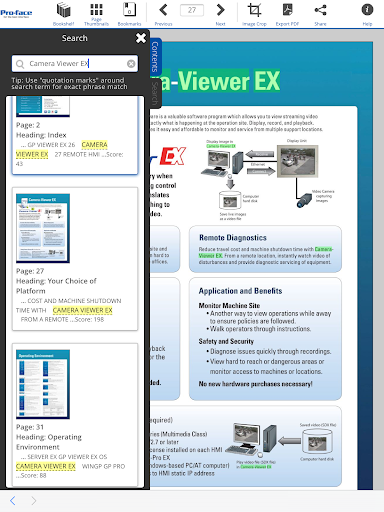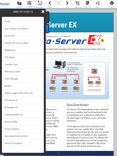 This application provides a comprehensive overview of the Pro-face lineup, as well as detailed features of our powerful HMI development software GP-Pro EX. Don’t waste time looking for the right website or paper brochure, it’s all in one place. Easily browse on your tablet or PC. Part numbers, product data, pictures and educational videos—all right at your fingertips!