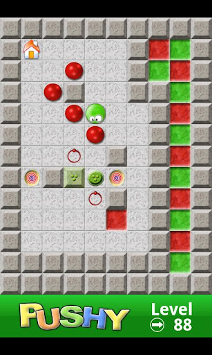 Meet Pushy, a small, friendly character who wants to be in his home. Before he can get there, however, there is a puzzle to solve. You move Pushy step by step and, through trial and error, determine how the different elements of the puzzle operate, and what tasks need to be done. For example, Pushy must move obstacles and dump a red ball into a red hole. After completing all relevant tasks, move Pushy to his home. If you solved everything correctly, you will advance to the next level!