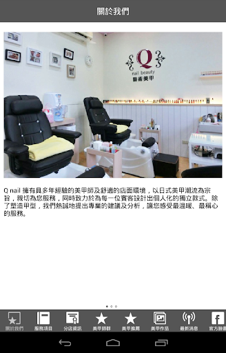 本應用程式為 Q nail藝術美甲專屬行動應用程式,提供各項便利功能供下載使用。