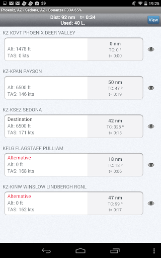 Fuel calculations are very precise. They are based on the performance charts of your POH, with the fuel flows during climb, cruise and descent corrected for altitude, pressure, temperature and wind. The app tells you the maximum fuel you can take not to exceed the Maximum Take Off Weight. It also calculates if that fuel is enough for you route to the destination and to the alternative.