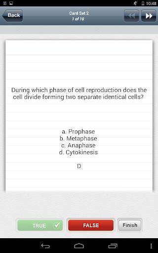 TRUE FALSE MODE: randomly generates customizable tests with true/false options based on your flashcard set.