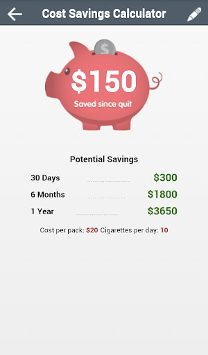 In real-time, calculate how much money you’ve saved from quitting smoking based on your actual usage.
