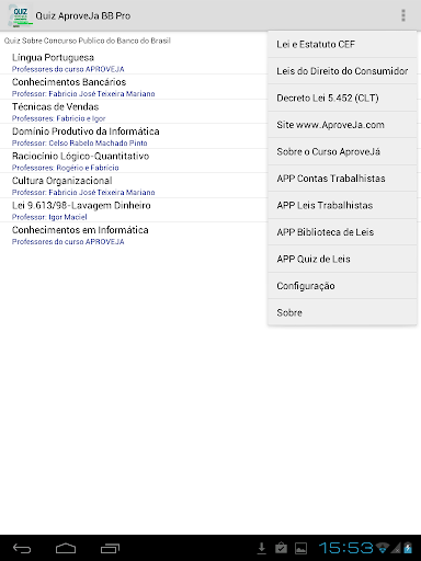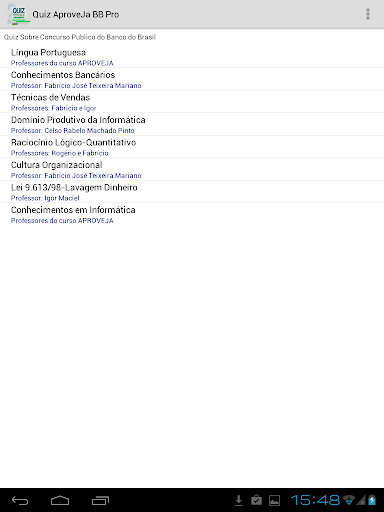 QUIZ CONCURSO BB é um aplicativo GRATUITO que através de perguntas no estilo QUiZ (Perguntas e Respostas) testa os seus conhecimentos sobre o conteúdo que será cobrado no concurso do BANCO DO BRASIL 2014/2015 como ponto de partida para seus estudos.