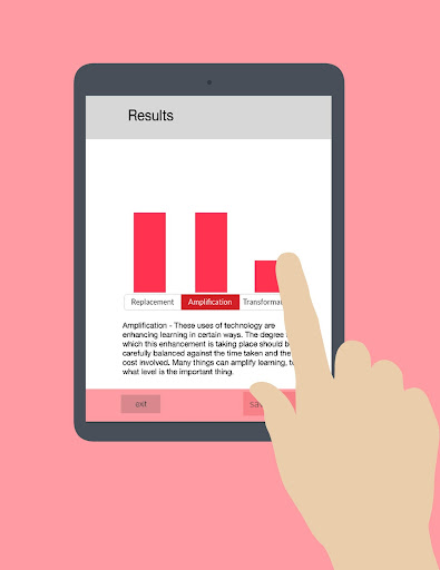 Transformation - This is the good stuff! These uses of technology are transforming teaching and learning from a process, method or goals perspective. If your technology use scores highly here then share your story and usage as widely as possible with colleagues and online.