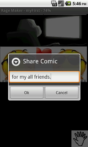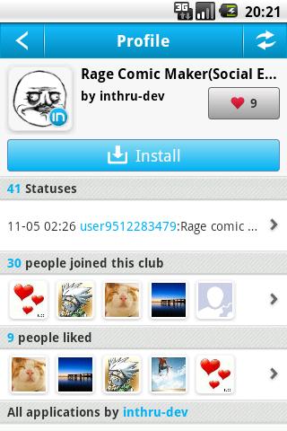 Rage Comic Maker(社交版)為Rage Comic Maker開源應用 + inthru插件。安裝Rage Comic Maker(社交版)後,在Rage Comic Maker的菜单里有“inthru”的按鈕,點擊inthru按鈕並註冊用戶後就可以開始體驗我們的社交功能了,在這裡,您可以跟其他玩家溝通,分享,可以向其他用戶發布新作。你還可以利用這個小工具製作自己的照片拼圖,然後發布自己的創意噢~