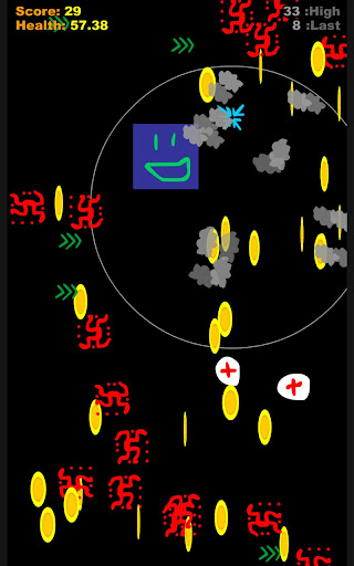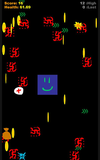 The goal is to beat your old score. Collect as many coins you can until you die. Randoii will heal itself as long as you keep picking up coins so never stop and rest! You can get over 100 health using the medkit but it will slowly drain down to 100 over time.