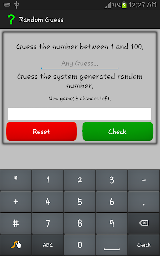 This game is about guessing a number which is picked by system randomly. For this, you have 5 chances. It means you have 5 chances to guess the randomly picked number.