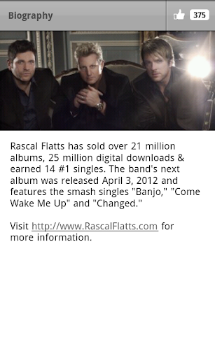 Download the official Rascal Flatts application where you will get the latest updates directly from the band. The app features streaming music, behind the scenes photos, videos and more.