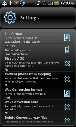 - 精簡版版本有Pro版本的所有功能,但ogg和MP3錄音暫停,每3分鐘(沒有上限為WAV),只需按下暫停鍵繼續。先試後買Pro版本。
