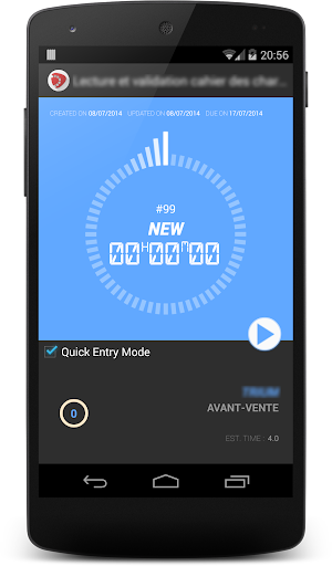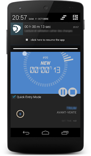 Cette application vous permet de saisir votre temps et modifier vos tâches simplement et rapidement. Vous pouvez enregistrer vos paramètres pour des saisies simples et rapides.