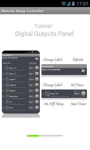 With this application is possible to controller any relay in the Relay Board wired in local network or public network.