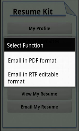 Create your Resume/CV with ease without worrying about layouts and formatting. Just enter your Resume/CV profile, skills, work experience and you are ready to view and email it. You can email RTF or PDF format. RTF format can be further edited with a standard word processor.