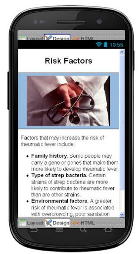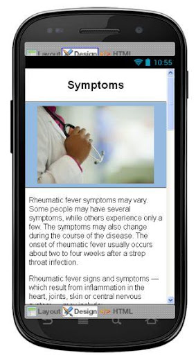 This app contains rheumatic fever diseases information for knowledge if you need to apply then please contact to nearby doctor. Useful information but is not a substitute for professional medical advice, diagnosis or treatment. If you think you may have a medical emergency, immediately call your doctor or the emergency services. Before acting on any of the information in this application, consult with your doctor to make sure that it is right for you.
