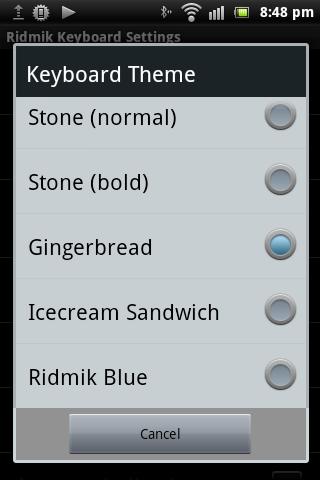 4. 7 themes, including Gingerbread, ICS & the Ridmik theme