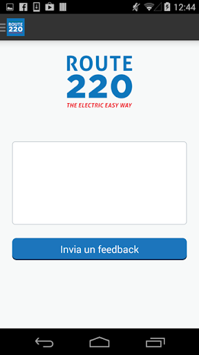 Route220® fornisce servizi a supporto della mobilità elettrica, turismo sostenibile, consumo consapevole e responsabile. é un'applicazione per Smartphone che consente di geolocalizzare tutti gli impianti di rifornimento per veicoli elettrici, testati e certificati per offrire e garantirne il miglior servizio.